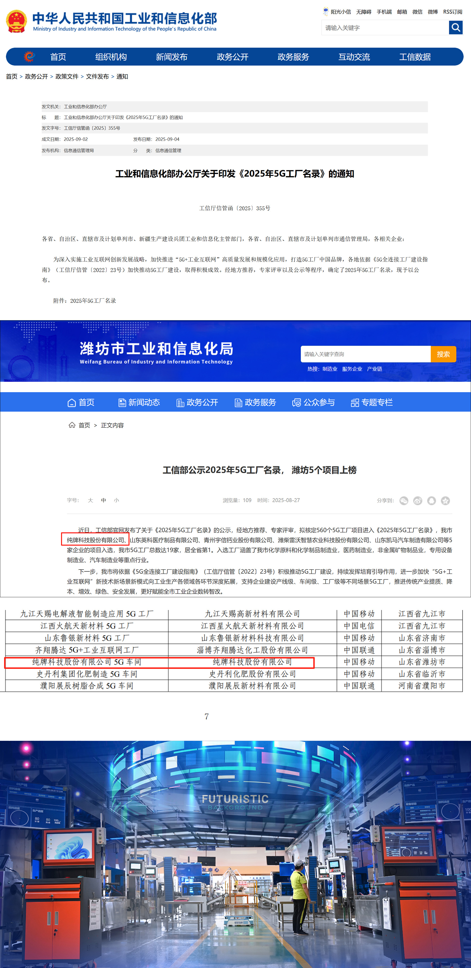 純牌科技股份有限公司入選國家工信部5G工廠